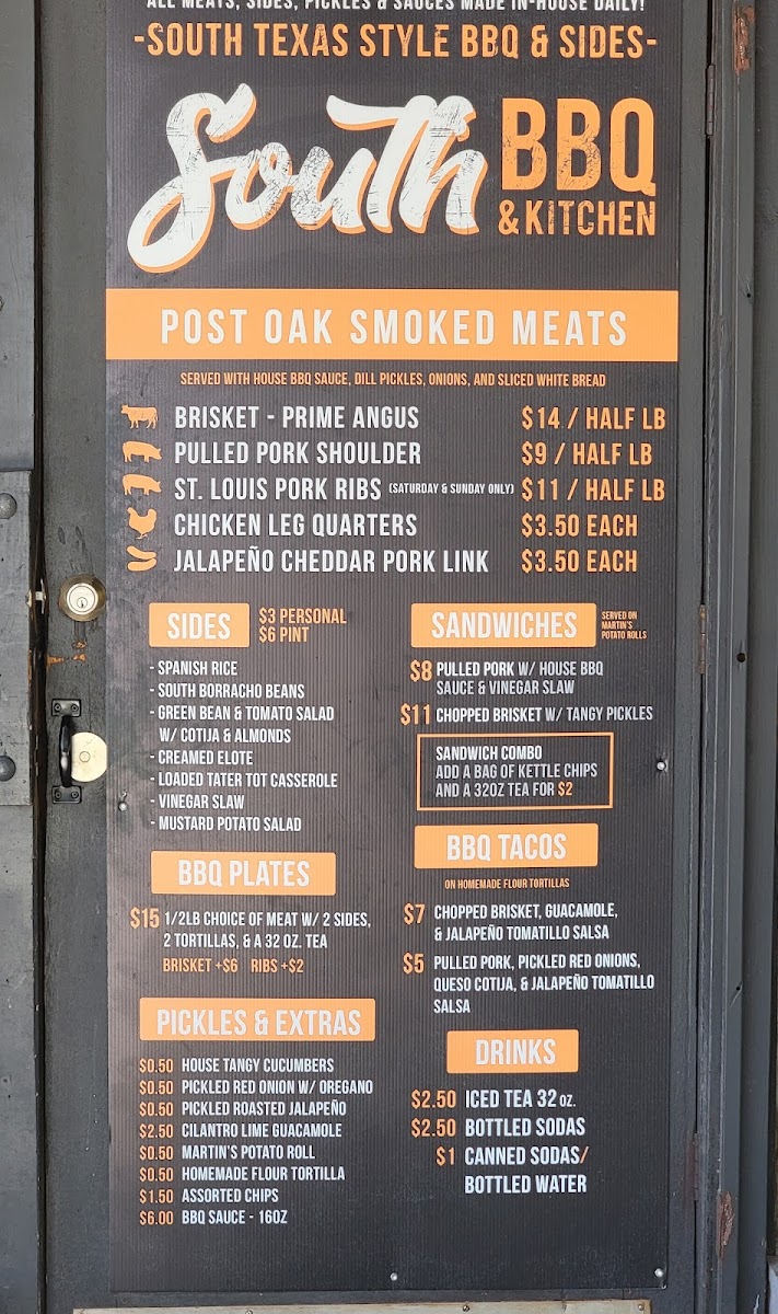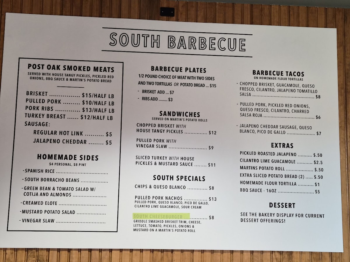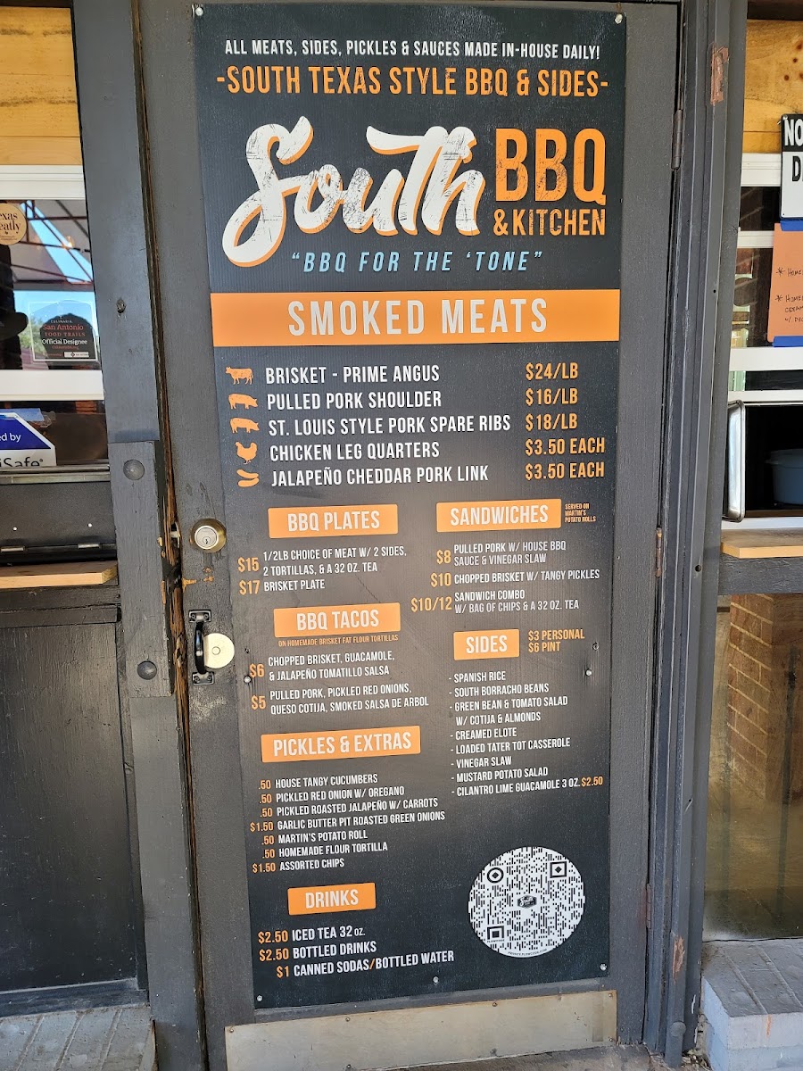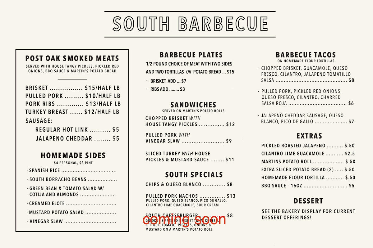 If you're craving delicious, authentic barbecue, the South Barbecue Menu is the place to be. Nestled at 2100 N Main Ave in San Antonio, this spot is a must-visit for anyone who appreciates great smoked meats. The menu features a mouthwatering selection of tender brisket, juicy ribs, and savory sausages, all expertly smoked to perfection. Whether you're stopping by for a quick bite or planning a hearty meal with friends, each dish is packed with flavor and cooked with care.